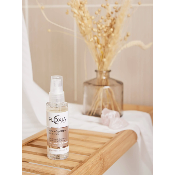 Le Sérum Capillaire Floxia, contenu dans un flacon de 50 ml, est remarquable pour sa composition riche en deux principaux actifs : PROCAPIL et les PROTÉINES DE SOJA HYDROLYSÉES.